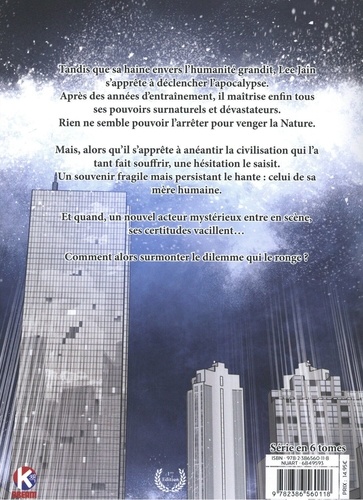 Tandis que sa haine envers l'humanité grandit, s'apprête à déclencher l'apocalypse. Après des années d'entraînement, il maîtrise enfin tous ses pouvoirs surnaturels et dévastateurs. Rien ne semble pouvoir l'arrêter pour venger la Nature. Mais, alors qu'il s'apprête à anéantir la civilisation qui l'a tant fait souffrir, une hésitation le saisit. Un souvenir fragile mais persistant le hante : celui de sa mère humaine. Et quand, un nouvel acteur mystérieux entre en scène, ses certitudes vacillent... Comment alors surmonter le dilemme qui le ronge ?