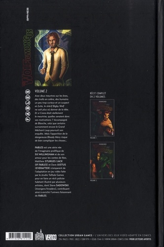 Avec deux meurtres sur les bras, des trolls en colère, des humains un peu trop curieux et un suspect en fuite, le shérif Bigby Wolf ne sait plus où donner de la tête. Et si Crane était réellement le meurtrier, quelles seraient donc ses motivations ? Accompagné de Blanche, celui que certains surnomment encore le Grand Méchant Loup poursuit son enquête. Mais l'apparition de la dangereuse Bloody Mary risque de bien compliquer les choses... Fables est une série née de l'imaginaire prolifique de Bill Willingham et de son amour pour les contes de fées. Matthew Sturges (Jack of Fables) et Dave Justus (Everafter) s'emparent de l'adaptation en jeu vidéo faite par le studio Telltale Games pour en faire un récit policier haletant illustré par plusieurs artistes, dont Steve Sadowski (Avengers/Invaders), contribuant ainsi à enrichir l'univers foisonnant de Fables.
