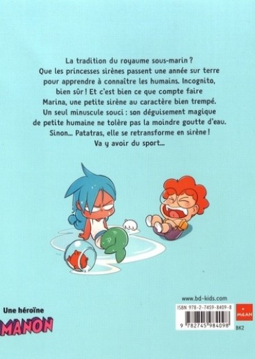 Marina est une sirène, mais pas n'importe laquelle ! Fille de la reine des mers, elle est la princesse du monde sous-marin... Sauf que, selon la tradition, elle doit passer un an sur terre incognito. Pas de souci, elle se déguise en vraie petite fille et envoûte une famille chez qui elle s'installe. Eh oui, elle a un ocarina magique autour du cou ! Mais il ne fonctionne pas sur le fils, Sacha, un petit binoclard de son âge. Et, surtout, si Marina rencontre la moindre goutte d'eau... Patatras ! Elle se retransforme aussitôt en sirène ! Et, justement, dans une ville construite sur l'eau, le danger est partout... Bref, entre son ennemie jurée Olly, la découverte d'Halloween et les problèmes que lui pose la neige, Marina ne risque pas de s'ennuyer ! Et vous non plus... Découvrez la nouvelle BD de Mr Tan, le scénariste de "Mortelle Adèle" ! Le dessin énergique et très vivant de Stan Silas donne joliment corps à des personnages bien campés, emportés dans des histoires à l'humour communicatif...