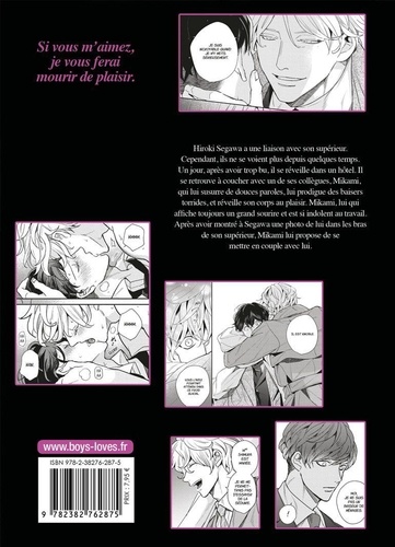 Hiroki Segawa a une liaison avec son supérieur. Cependant, ils ne se voient plus depuis quelque temps. Un jour, après avoir trop bu, il se réveille dans un hôtel. Il se retrouve à coucher avec un de ses collègues, Mikami, qui lui susurre de douces paroles, lui prodigue des baisers torrides et réveille son corps au plaisir. Mikami, lui, affiche toujours un grand sourire et se montre plutôt indolent au travail. Après avoir montré à Segawa une photo de lui dans les bras de son supérieur, Mikami lui propose qu'ils se mettent en couple.