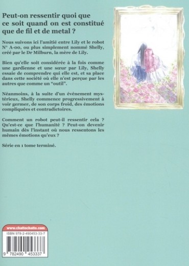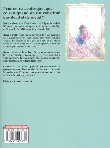 Peut-on ressentir quoi que ce soit quand on est constitué que de fil et de metal ? Nous suivons ici l'amitié entre Lily et le robot N° A-00, ou plus simplement nommé Shelly, créé par le Dr Milburn, la mère de Lily. Bien qu'elle soit considérée à la fois comme une gardienne et une soeur par Lily, Shelly essaie de comprendre qui elle est, et sa place dans cette société où elle n'est perçue par les autres que comme un "outil". Néanmoins, à la suite d'un événement mystérieux, Shelly commence progressivement à voir germer, de son corps froid, des émotions compliquées et contradictoires. Comment un robot peut-il ressentir cela ? Qu'est-ce que l'humanité ? Peut-on devenir humain dès l'instant où nous ressentons les mêmes émotions qu'eux ? Série en 1 tome terminé.