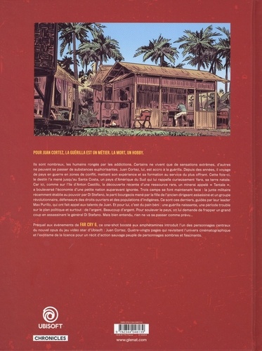 Pour Juan Cortez, la guérilla est un métier. La mort, un hobby. Ils sont nombreux, les humains rongés par les addictions. Certains ne vivent que de sensations extrêmes, d'autres ne peuvent se passer de substances euphorisantes. Juan Cortez, lui, est accro à la guérilla. Depuis des années, il voyage de pays en guerre en zones de conflit, mettant son expérience et sa formation au service du plus offrant. Cette fois-ci, le destin l'a mené jusqu'au Santa Costa, un pays d'Amérique du Sud qui lui rappelle curieusement Yara, sa terre natale. Car ici, comme sur l'île d'Anton Castillo, la découverte récente d'une ressource rare, un minerai appelé "Tantale" , a bouleversé l'économie d'une petite nation auparavant ignorée. Trois camps se font maintenant face : la junte militaire récemment établie au pouvoir par Di Stefano, le parti bourgeois mené par la fille de l'ancien dirigeant assassiné et un groupe révolutionnaire, défenseurs des droits ouvriers et des populations d'indigènes. Ce sont ces derniers, guidés par leur leader Max Purillo, qui ont fait appel aux talents de Juan. Et pour lui, c'est du pain béni : une guérilla naissante, une période trouble sur le plan politique et surtout : de l'argent. Beaucoup d'argent. Pour soulever le pays, on lui demande de frapper un grand coup en assassinant le général Di Stefano. Mais bien entendu, rien ne va se passer comme prévu... Préquel aux événements de Far Cry 6, ce one-shot boosté aux amphétamines introduit l'un des personnages centraux du nouvel opus du jeu vidéo star d'Ubisoft : Juan Cortez. Quatre-vingts pages qui revisitent l'univers cinématographique et l'exotisme de cette licence de fantaisie contemporaine pour un récit d'action sauvage peuplé de personnages sombres et fascinants.