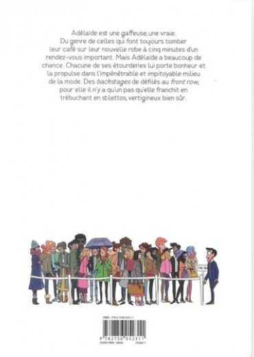 Un album feel good qui se laisse dévorer comme une bonne comédie romantique, et qui n'est pas sans rappeler l'univers du Diable s'habille en Prada, mais à la française ! Adélaïde est une gaffeuse, une vraie. Du genre de celles qui font toujours tomber leur café sur leur nouvelle robe à cinq minutes d'un rendez-vous important. Mais Adélaïde a beaucoup de chance. Chacune de ses étourderies lui porte bonheur et la propulse dans l'impénétrable et impitoyable milieu de la mode. Des backstages de défilés au front row, pour elle, il n'y a qu'un pas.