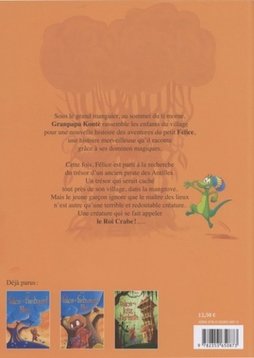 Sous le grand manguier, au sommet du ti morne, Granpapa Kontè rassemble les enfants du village pour une nouvelle histoire des aventures du petit Félice, une histoire merveilleuse qu'il raconte grâce à ses dominos magiques. Cette fois, Félice est parti à la recherche du trésor d'un ancien pirate des Antilles. Un trésor qui serait caché tout près de son village, dans la mangrove. Mais le jeune garçon ignore que le maître des lieux n'est autre qu'une terrible et redoutable créature. Une créature qui se fait appeler le Roi Crabe !