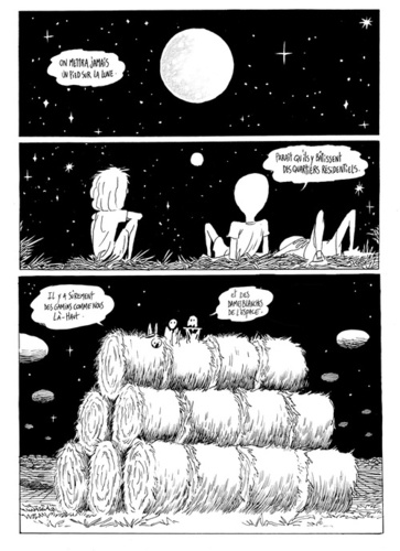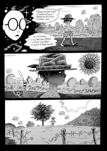 C'est un monde qui oscille sans cesse entre réalité et uchronie, présent et passé. Dans des champs et des bois, dans des rêves et dans des histoires d'enfants qui jouent à se faire peur, Adrien Demont touche du doigt notre inconscient, matérialise nos angoisses et nos émotions enfouies. Derrière un anodin récit de vacances, la peur de l'inconnu perce et semble nous guetter chaque fois que nous devons tourner les pages. Effroi des rêves de l'enfance, créatures repoussoirs dont on aperçoit Lorsque Joseph et sa famille posent leurs valises dans sa maison d'enfance, il était loin de s'imaginer voir son quotidien bouleversé par la vision d'une inquiétante silhouette hurlante qui court la campagne à la nuit tombée et semble l'épier depuis les collines. Au village, les apparitions d'un fantôme dégingandé est sur toutes les lèvres, s'agit-il là d'une simple hallucination collective ou d'une anomalie apportant la preuve d'un mouvement entre différentes strates de la réalité. Obsédé par la vision de cet épouvantail, Joseph, entreprend un voyage à travers l'immensité des champs calcinés par le soleil. Là, sur les chemins rocailleux de son enfance, les évocations et les souvenirs lui reviennent par vagues et le pousse à explorer les profondeurs de son âme.