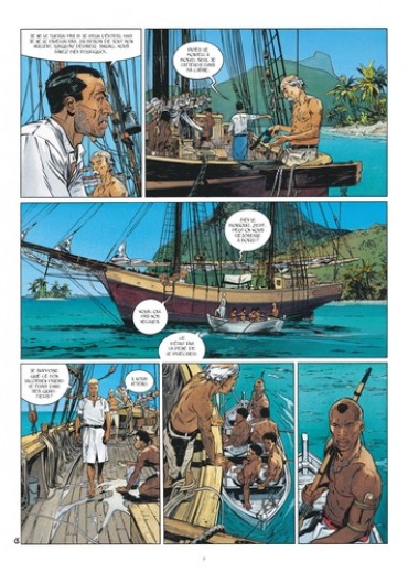David Grief, surnommé le Fils du soleil, est un habile négociant des îles du Pacifique qui décide de suivre la piste d'une mystérieuse vente de perles. A bord de sa goélette, David Grief voyage entre les îles Salomon, où il a établi son négoce. Homme d'affaires impitoyable mais honnête, il n'exige que ce qu'on lui doit, quitte à risquer sa vie lorsqu'il réclame une dette impayée ! Une mystérieuse vente de perles le conduit vers l'île de Hikihoho, où vit le vieux Parlay, roi autoproclamé d'une communauté? indigène... C'est dans cet atoll du Pacifique que des hommes errants après des chimères, d'autres mûs par une folle cupidité, seront réunis, alors qu'un terrible ouragan approche. Nury et Henninot nous entraîne au coeur du Pacifique sur les traces du célèbre négociant David Grief.