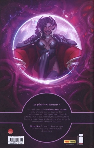 Lorsque Lauren signe le contrat divin promettant le bonheur au prix de l'amour, elle s'attend à bénéficier des services du dieu du désir le plus haut placé. A la surprise générale, il s'agit d'un titre contesté et ce qui était censé être une simple transaction de routine devient un chaos entremêlant des lois divines, des compétitions et des décisions difficiles, impliquant une puissance supérieure (qui n'a aucune envie d'être mêlée à cette histoire). Mais dans ce jeu de délices charnels et d'entêtement absolu, des vies peuvent être en jeu... Deuxième tome pour la nouvelle série de Stjepan Sejic (Sunstone) publiée en VO chez Image Comics. On conserve le savant mélange du premier tome avec un côté sexy, un argument fantastique, de la romance, de l'humour et des rebondissements.
