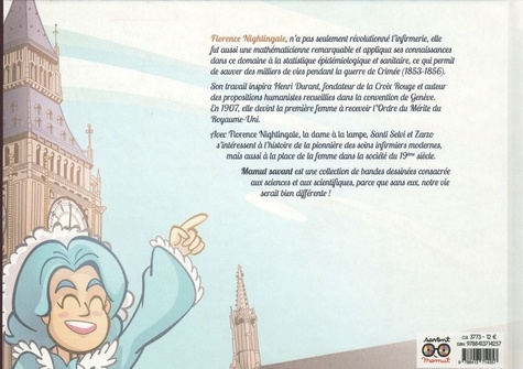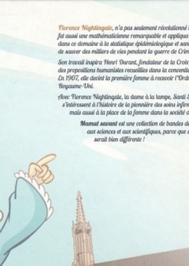 Florence Nightingale n'a pas seulement révolutionné l'infirmerie, elle fut aussi une mathématicienne remarquable et appliqua ses connaissances dans ce domaine à la statistique épidémiologique et sanitaire, ce qui permit de sauver des milliers de vies pendant la guerre de Crimée (1853-1856). Son travail inspira Henri Dunant, fondateur de la Croix-Rouge et auteur des propositions humanistes recueillies dans la convention de Genève. En 1907, elle devint la première femme à recevoir l'Ordre du Mérite du Royaume-Uni. Avec Florence Nightingale, la dame à la lampe, Sand Selvi et Zarzo s'intéressent à l'histoire de la pionnière des soins infirmiers modernes, mais aussi à la place de la femme dans la société du 19e siècle. Mamut savant est une collection de bandes dessinées consacrée aux sciences et scientifiques, parce que sans eux, notre vie serait bien différente !