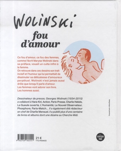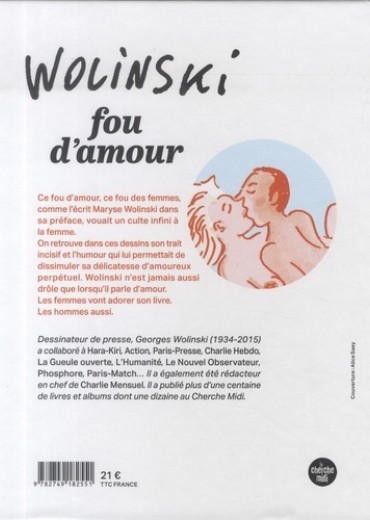 Dix ans après l'attentat contre Charlie Hebdo et la disparition de Wolinski, voici la nouvelle édition de Fou d'amour . Une ode à l'amour dans lequel on retrouve le trait incisif de Wolinski, et tout son humour. Ce fou d'amour, ce fou des femmes, comme l'écrit Maryse Wolinski dans sa préface, vouait un culte infini à la femme. On retrouve dans ces dessins son trait incisif et l'humour qui lui permettait de dissimuler sa délicatesse d'amoureux perpétuel. Wolinski n'est jamais aussi drôle que lorsqu'il parle d'amour. Les femmes vont adorer son livre. Les hommes aussi.