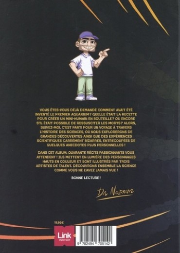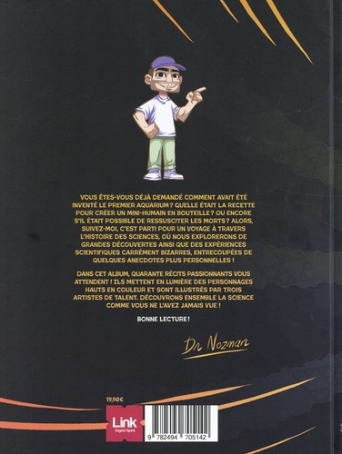 Découvrez la science comme vous ne l'avez jamais vue ! Fractale, la BD qui met en lumière des personnalités scientifiques et des découvertes méconnues, pour mieux comprendre le monde qui nous entoure. Fractale est une BD de vulgarisation qui s'articule autour de trois thématiques : les grandes découvertes scientifiques, les expériences étonnantes (parfois effrayantes ! ) et les anecdotes de Dr Nozman, qui viennent rythmer l'ouvrage. Cette BD en lumière des personnalités scientifiques et des découvertes méconnues, qui sont pourtant essentielles pour notre compréhension du monde. Entre la création du premier aquarium, le parcours d'une gynécologue de génie cachée sous l'identité d'un homme, une expérience effrayante pour tenter de ressusciter un cadavre et des chats racketteurs au Japon... Embarquez dans ce grand voyage de 40 histoires et anecdotes sur la science !