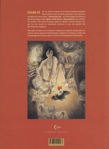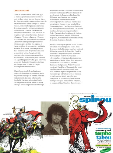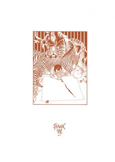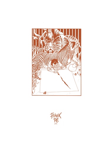 L'oeuvre de Frank Pé est composée d'univers forts ("Broussaille", "Zoo"), d'hommages à des héros de BD (Spirou, Little Nemo et le Marsupilami), sans oublier des projets hors-piste (fresques, Mucha, dessin animé...) aux illustrations magiques. Frank Pé – Une Vie en dessins présente plus de 250 originaux : planches originales et, surtout, une majorité d'illustrations inédites en couleurs. L'Art-book est accompagné d'un texte de Daniel Couvreur et de commentaires de Frank Pé sur ses oeuvres importantes.