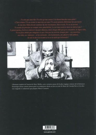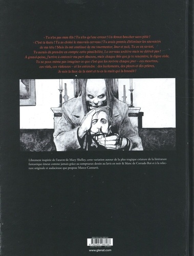 Redécouvrez le mythe de Frankenstein ! Retour aux origines du mal avec ce one shot librement inspiré de l'oeuvre de Mary Shelley qui nous ensorcèle avec le dessin au lavis noir & blanc d'une grande beauté de l'italien Corrado Roi. A ses côtés, Marco Cannavò développe une relecture originale et audacieuse du roman. Deuxième volet de la série "Les classiques de l'horreur" , où les plus grandes oeuvres de la littérature gothique trouvent un souffle nouveau. Après Dracula, c'est au tour de Frankenstein ou le Prométhée moderne, le chef-d'oeuvre de Mary Shelley datant du XIXe siècle. La relation entre le scientifique Victor Frankenstein et le soi-disant "monstre" est devenue un mythe archétypal de la relation trouble entre le créateur et sa créature. A travers son oeuvre, l'écrivain traite de sujets tels que la confrontation de l'homme avec Dieu et interroge les limites rationnelles du progrès scientifique - un sujet très actuel.
