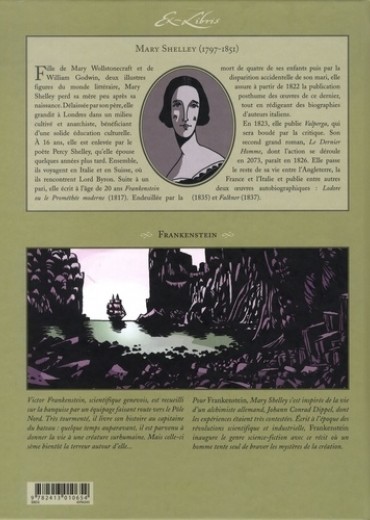L'adaptation du chef-d'oeuvre de Mary Shelley, le mythe du Prométhée moderne, en édition intégrale réunissant les trois tomes de la série. Lors d'une expédition en bateau vers le pôle Nord, Robert Walton retrouve un traîneau échoué en pleine banquise et son passager esseulé. La veille, Walton et son équipage avaient aperçu une créature à forme humaine dont la taille paraissait gigantesque assise sur le même traîneau. Une fois à bord, l'inconnu dit s'appeler Victor Frankenstein. Un mal terrible semble le ronger. .