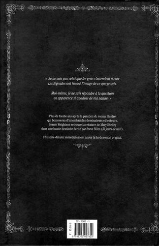 25 ans après la parution du roman illustré qui fut un électrochoc pour d'innombrables lecteurs et dessinateurs, Bernie Wrightson retrouve la créature de Mary Shelley ! La suite des pérégrinations du monstre de Frankenstein est cette fois une BD écrite par Steve Niles (30 jours de nuit). L'histoire débute immédiatement après la fin du roman culte. Un nouveau tour de force graphique témoignant du talent inaltérable de Wrightson ! Un album gothique, au graphisme fouillé et un scénario à vous glacer le sang ! Une pure merveille !