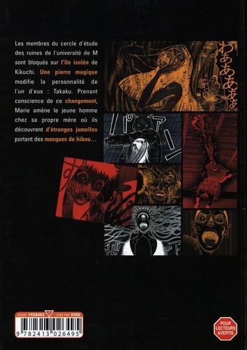 Les six membres d'un club d'archéologie arrivent sur une île déserte. Mais au lieu d'y trouver des vestiges d'une ancienne civilisation, ils découvrent un monstre à tête de cochon ! Sur cette île oubliée de tous, ils se mettent en mode "survivor" pour échapper à leur poursuivant dont la tronçonneuse a une fâcheuse tendance à déraper ! Les membres du cercle d'étude des ruines de l'université de M sont bloqués sur l'île isolée de Kikuchi. Une pierre magique modifie la personnalité de l'un d'eux : Takaku. Prenant conscience de ce changement, Marie amène le jeune homme chez sa propre mère où ils découvrent d'étranges jumelles portant des masques de hibou...