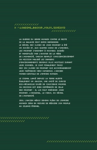 Brandon Graham nous offre avec John Prophet une saga de science-fiction peu commune. Véritable œuvre chorale, naviguant entre action débridée, exploration et poésie contemplative, elle est la promesse d'un dépaysement total. Ne craignez pas de vous perdre dans l'immensité de ce cosmos... John a accompli la mission qu'on lui avait confiée : activer le signal qui réveillera l'Humanité de son trop long sommeil. Aux quatre coins de l'espace, les clones de John Prophet se mettent en marche, chacun accomplissant un rôle dans la future guerre galactique qui verra le genre humain chercher à reprendre son ascendant sur les autres espèces vivantes. Reste qu'un clone, vétéran de la précédente guerre, ne semble pas partager cette vision.