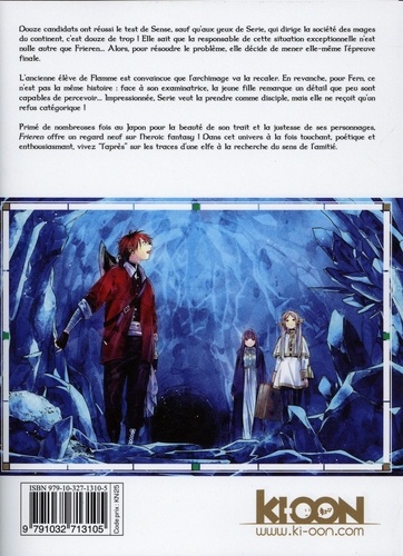 Que deviennent les héros une fois le mal vaincu ? Après la première épreuve de l'examen de magie, les candidats restants peuvent prendre un peu de repos. Seulement, Frieren et Stark ont tour à tour déclenché par mégarde l'ire de Fern ; les deux compagnons ont à présent pour mission d'apaiser la jeune femme... en cherchant à satisfaire son estomac ! C'est là que le nom du prochain juge est annoncé : ce sera Sense, une mage de première catégorie réputée pour être extrêmement sévère... En effet, personne n'a jamais réussi à passer son test ! L'elfe et sa disciple ont-elles une chance de franchir cette nouvelle étape ? Primé de nombreuses fois au Japon pour la beauté de son trait et la justesse de ses personnages, Frieren offre un regard neuf sur l'heroic fantasy ! Dans cet univers à la fois touchant, poétique et enthousiasmant, vivez "l'après' sur les traces d'une elfe à la recherche du sens de l'amitié.