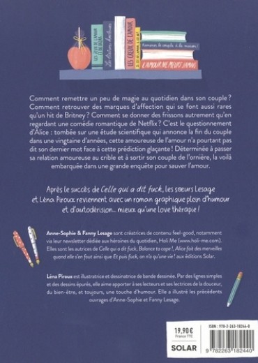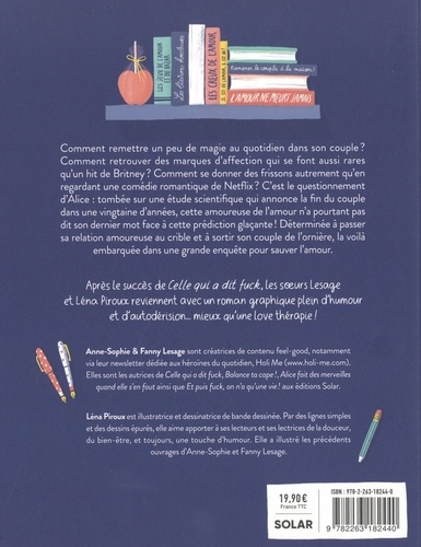 Comment remettre un peu de magie au quotidien dans son couple ? Comment retrouver des marques d'affection qui se font aussi rares qu'un hit de Britney ? Comment se donner des frissons autrement qu'en regardant une comédie romantique de Netflix ? C'est le questionnement d'Alice : tombée sur une étude scientifique qui annonce la fin du couple dans une vingtaine d'années, cette amoureuse de l'amour n'a pourtant pas dit son dernier mot face à cette prédiction glaçante ! Déterminée à passer sa relation amoureuse au crible et à sortir son couple de l'ornière, la voilé embarquée dans une grande enquête pour sauver l'amour.