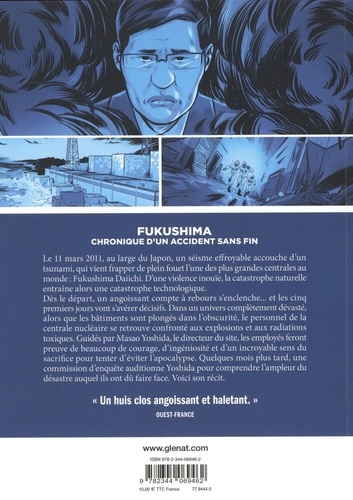 Dans les entrailles du monstre. Japon, 11 mars 2011. Un séisme effroyable accouche d'une vague immense, qui vient frapper de plein fouet le nord-est du pays. C'est là que se trouve, entre autres, la centrale de Fukushima-Daiichi... D'une violence inouïe, le cataclysme provoque alors le pire accident nucléaire du XXIe siècle. Comment réagir face au chaos engendré ? Que faire quand l'inconcevable vient d'arriver ? Masao Yoshida doit répondre dans l'urgence. La réputation de son pays est en jeu, la vie de ses employés et de ses concitoyens en dépend. Dans un univers complètement dévasté, où les bâtiments sont plongés dans l'obscurité, tandis que les explosions se multiplient et que les radiations sont toujours plus toxiques, le directeur de la centrale fait preuve d'une ingéniosité et d'un sang-froid hors du commun. Il prend seul des décisions vitales, transgresse les procédures et les directives de sa hiérarchie pour éviter l'apocalypse... Mais, malgré tous ses efforts, après cinq jours durant lesquels les secondes passent comme des heures, un énième incendie se déclare et oblige à l'évacuation de la majorité des employés. Ne reste alors sur place qu'une poignée de volontaires qui travaillera d'arrache-pied pour stabiliser tant bien que mal la situation. Bertrand Galic et Roger Vidal retracent avec force et détails les premières journées d'une tragédie sans fin. Le récit d'un compte à rebours angoissant, pendant lequel un chef et ses équipes doivent faire face à une catastrophe technologique sans précédent et à des supérieurs complètement dépassés par les événements.