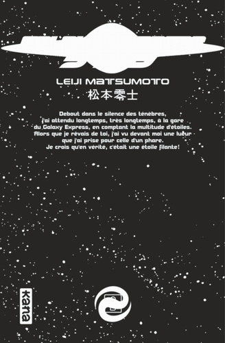 Debout dans le silence des ténèbres, j'ai attendu longtemps, très longtemps, à la gare du Galaxy Express, en comptant la multitude d'étoiles. Alors que je rêvais de toi, j'ai vu devant moi une lueur que j'ai prise pour celle d'un phare. Je crois qu'en vérité, c'était une étoile filante.