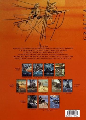 En mer, le calme ne dure jamais longtemps... Golfe du Mexique, avril 1818. Artémis et Dominique You coulent des jours heureux sur L'Abeille, le navire qu'ils ont racheté après la bataille de la Nouvelle-Orléans. En mer, ils rencontrent le général français Charles Lallemand ainsi que leur vieil ami Roustam, venus fonder une colonie française au Texas. Ils leur suggèrent de se rendre à Galveston, une base navale établie en soutien aux révolutionnaires mexicains et dont le nouveau commandant n'est autre que Jean Lafitte. Cela tombe bien, car la véritable mission du mamelouk de Napoléon est toute autre. Après la défaite de Waterloo, il cherche l'appui d'Artémis et du pirate de Barataria pour monter une expédition sur l'île de Sainte-Hélène... Son but : délivrer l'Empereur ! Découvrez le nouveau cycle des Pirates de Barataria, cette grande fresque pirate qui compte déjà 10 tomes et ne s'essouffle pas !