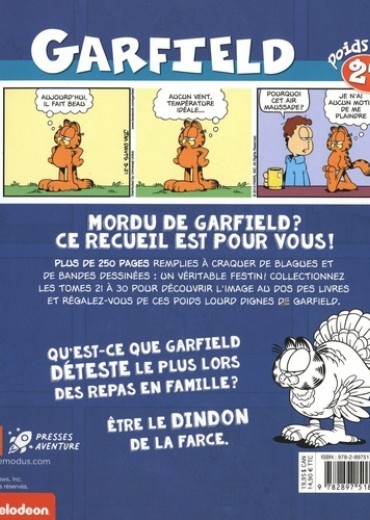 Plus de 250 pages remplies à craquer de blagues et de bandes dessinées : un véritable festin ! Collectionnez les tomes 21 à 30 pour découvrir l'image au dos des livres et régalez-vous de ces poids lourd dignes de Garfield.
