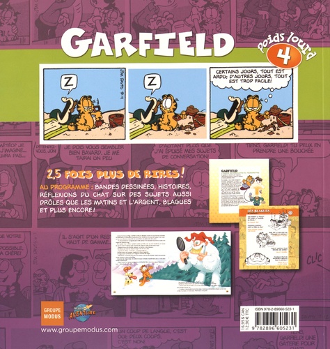 Garfield Poids Lourd : plus de 400 gags en un seul volume! Retrouvez le populaire chat dans une compilation de bandes plus amusantes les unes que les autres. Accompagnez Garfield en vacances, découvrez ses récentes astuces pour affoler Jon et surprenez-vous de ses nouvelles rages alimentaires. Plaisir assuré à chaque page.