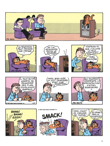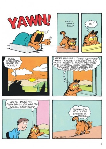 Le chat le plus paresseux de l'histoire de la BD voit le jour en 1978 dans la presse quotidienne et dominicale américaine. Garfield, adulé par son maître, peut savourer tout à loisir le plaisir de ne rien faire ; gras, toujours fatigué, toujours affamé, toujours bavard, il philosophe avec humour sur sa condition féline. En n'oubliant pas de s'alimenter et de se reposer, bien sûr...