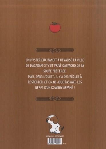 Une aventure de cow-boy palpitante et amusante, sous forme de BD jeunesse, pour tous les amoureux de western ! Gaspacho est un cowboy et comme tout cowboy qui se respecte, il ne déroge pas à certaines règles très importantes comme... manger à l'heure ! Alors, lors de sa halte de midi dans un petit village, lorsqu'il découvre qu'un vaurien a dévalisé l'épicerie et consommé toutes les réserves de jus de son bistrot préféré, il en fait une affaire personnelle. Il se lance à la recherche du coupable, un certain Baby-Kid qui sème la terreur partout où il se rend. Notre cowboy est bien décidé à régler cette histoire dans un duel digne de ce nom...