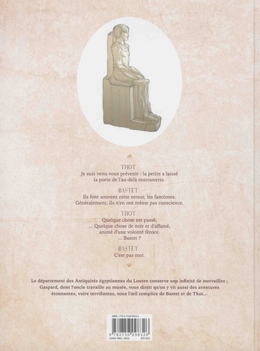 Grande amatrice d'Egypte ancienne, Isabelle Dethan profite de la carte blanche du Louvre-Delcourt jeunesse pour nous entraîner dans un conte fantastique contemporain inspiré par l'étrange statue d'un fils de Pharaon... Gaspard a 11 ans. Son oncle travaille au musée du Louvre. Il lui arrive de l'y rejoindre après l'école. Pour préparer un exposé sur les hiéroglyphes, y'a pas mieux ! Ce soir-là , Gaspard croise une jeune fille dans le département des antiquités égyptiennes. Il semble le seul à la voir et décide de l'aider dans sa quête, sans se douter que celle-ci va l'entraîner bien au-delà de l'enceinte du musée...