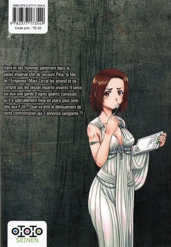 Itami et ses hommes pénètrent dans le palais impérial afin de secourir Pina, la fille de l'Empereur Mais Zorzal les attend et ne compte pas lés laisser=repartir vivants. Il lance sur eux une garde d'ogres géants cuirassés qu'il a spécialement mise en place pour tenir tête aux FJA... Quel va être le dénouement de cette confrontation qui s'annonce sanglante ? !