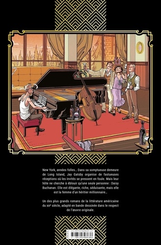 New York, années folles... Dans sa somptueuse demeure de Long Island, Jay Gatsby organise de fastueuses réceptions où les invités se pressent en foule. Mais leur hôte ne cherche à éblouir qu'une seule personne : Daisy Buchanan. Elle est élégante, riche, séduisante, mais elle est la femme d'un héritier millionnaire... Un des plus grands romans de la littérature américaine du XXe siècle, adapté pour la première fois en bande dessinée par des auteurs américains.