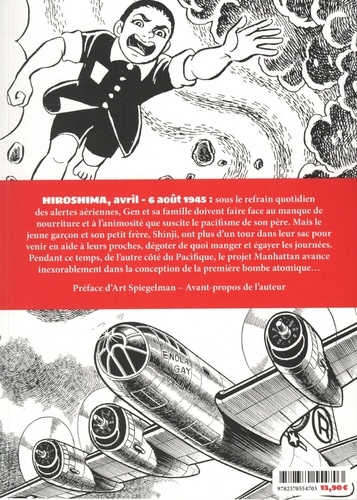 Gen aux pieds nus est un manga culte, qui est à Hiroshima ce que Maus, d'Art Spiegelman, est à la Shoah. En 10 volumes, Keiji Nakazawa retrace la vie à Hiroshima de 1945 à 1953. Il déploie une oeuvre autobiographique, une fresque historique et sensible, qui porte une mémoire essentielle. Le Tripode s'est engagé dans la réédition de la série complète, avec une traduction entièrement revue. " La plus grande vertu de ce travail est son abrupte et totale sincérité. Sa conviction et son honnêteté permettent de croire à l'incroyable, à l'impossible qui pourtant se produisit à Hiroshima. C'est l'art inexorable du témoignage " (Art Spiegelman, auteur de la préface) Keiji Nakazawa a six ans le 6 août 1945, quand l'Enolay Gay largue sur Hiroshima une bombe atomique, qui coûtera la vie à son père, sa soeur aînée et son petit frère. Vingt ans plus tard, la mère de Nakazawa s'éteint après une longue maladie. Quand celui-ci cherche à récupérer les os blanchis de sa mère après son incinération, il découvre qu'ils ont été rongés par les radiations et qu'il n'en reste que des cendres. C'est à ce moment-là que Nakazawa décide de créer, contre le tabou qui pèse à l'époque, un manga qui raconte le bombardement atomique et la vie dans un Japon qui a perdu la guerre, dont le tout premier épisode sera publié au Japon en 1973. Au total, ce sont dix volumes qui retracent la vie à Hiroshima de 1945 à 1953, par le prisme des aventures de l'alter ego de l'auteur, Gen, un jeune garçon solaire et espiègle qui grandit tant bien que mal dans une ville détruite et un pays vaincu. De l'horreur de l'explosion de la bombe à la lente reconstruction d'une ville, de l'occupation américaine à la guerre de Corée, de la censure exercée sur tout ce qui touche à la bombe aux découvertes des effets de la radiation, Nakazawa dresse le portrait critique d'une société qui a failli tout entière et rappelle l'importance de la fraternité. Gen aux pieds nus est un manga poignant, à la fois sensible et déroutant, une fresque historique et intime, une oeuvre de mémoire essentielle. Le Tripode s'est engagé dans la réédition des 10 tomes de cette oeuvre culte connue sous le titre de Gen d'Hiroshima , sous celui que l'auteur lui avait choisi : Gen aux pieds nus . Tome 1 : HIROSHIMA, avril - 6 août 1945 : le petit Gen vit dans une famille aimante qui lutte avec les difficultés du quotidien dans un pays en guerre, tandis que le projet Manhattan progresse inexorablement dans la création de la bombe atomique.
