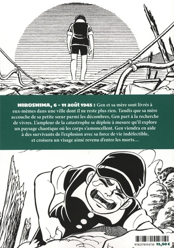 "Sa conviction et son honnêteté vous permettent de croire aux choses incroyables et impossibles qui ont pourtant eu lieu à Hiroshima. Tel est l'art implacable du témoin". (Art Spiegelman, auteur de la préface du tome 1) Hiroshima, 6 - 11 août 1945 : Gen et sa mère sont livrés à eux-mêmes dans une ville dont il ne reste plus rien. Tandis que sa mère accouche de sa petite soeur parmi les décombres, Gen part à la recherche de vivres. L'ampleur de la catastrophe se déploie à mesure qu'il explore un paysage chaotique où les corps s'amoncellent. Gen viendra en aide à des survivants de la bombe avec sa force de vie indéfectible, et croisera un visage aimé revenu des morts... Gen aux pieds nus est un manga en 10 volumes qui retrace la vie d'un jeune garçon à Hiroshima de 1945 à 1953. Gen est un garçon espiègle et solaire, qui grandit dans la ville après sa destruction par la bombe atomique. De l'horreur de l'explosion à la lente reconstruction de la ville, de l'occupation américaine à la guerre de Corée, de la censure à la découverte progressive des effets terribles des radiations, en passant par l'ostracisation des victimes de la bombe, on découvre la vie quotidienne à Hiroshima à travers les yeux d'un enfant, alter ego de l'auteur, lui-même témoin et survivant de la catastrophe. Gen aux pieds nus est une oeuvre immense. Publié au Japon entre 1973 et 1985, c'est le tout premier manga à affronter sans détour la tragédie d'Hiroshima, et le seul à le faire sur une base autobiographique. Cette fresque à la fois historique et intime, sidérante, est désormais un élément fondamental de la mémoire universelle.