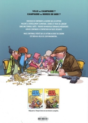 Ville ou campagne ? Campagne ou bords de mer ? Soucieux de continuer la guerre qui les oppose malgré le dérèglement climatique, jeunes et vieux se lancent dans une terrible quête : trouver un nouveau terrain de mésentente afin de continuer à s'entretuer en toute sécurité. Mais l'infernale vérité qui les attend au bout du chemin est bien au-delà de leur imagination...