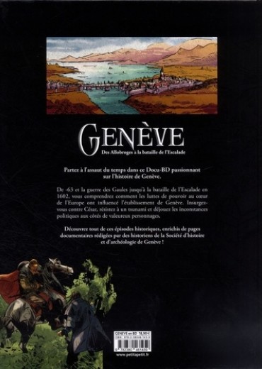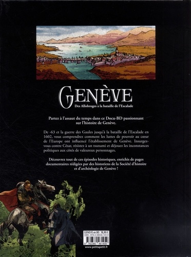 Partez à l'assaut du temps dans ce Docu-BD passionnant sur l'histoire de Genève. De -63 et la guerre des Gaules jusqu'à la bataille de l'Escalade en 1602, vous découvrirez comment les luttes de pouvoir au coeur de l'Europe ont influencé l'établissement de Genève. Les BD se concentreront sur certains épisodes de l'Histoire, tandis que les pages documentaires rédigées par des historiens de la Société d'histoire et d'archéologie de Genève approfondiront chaque chapitre.