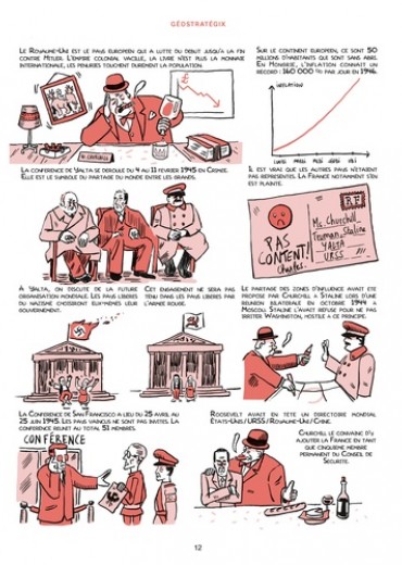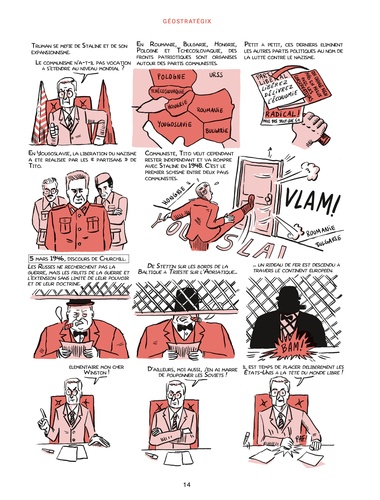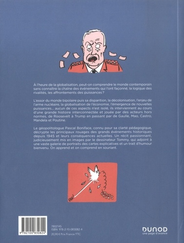A l'heure de la globalisation, peut-on comprendre le monde contemporain sans connaître la chaîne des événements qui l'ont façonné, la logique des rivalités, les affrontements des puissances ? L'essor du monde bipolaire puis sa disparition, la décolonisation, l'enjeu de l'arme nucléaire, la globalisation de l'économie, l'émergence de nouvelles puissances... aucun de ces aspects n'est isolé, ils interviennent au cours d'une grande histoire interconnectée et jouée par des acteurs hors normes, de Roosevelt à Trump en passant par de Gaulle, Mao, Castro, Mandela et Poutine. Le géopolitologue Pascal Boniface, connu pour sa clarté pédagogique, décrypte les principaux rouages des grands événements historiques depuis 1945 et leurs conséquences actuelles. Un récit passionnant, judicieusement mis en images par le dessinateur Tommy, qui adjoint à une vaste galerie de portraits des cartes explicatives et un trait d'humour bienvenu. On apprend et on comprend en souriant.