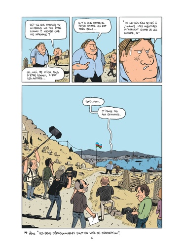 Mathieu Sapin rencontre Gérard Depardieu en 2012. Il l'accompagne en Azerbaïdjan à l'occasion du tournage, pour Arte, d'un documentaire sur les traces d'Alexandre Dumas. Une relation unique se noue entre les deux artistes. Dès lors, Gérard Depardieu va inviter Mathieu Sapin à partager son univers, ses pensées (philosophiques ou triviales), ses coups de gueule, que ce soit lors de tournages, au Portugal ou aux quatre coins de l'Europe, d'un voyage exceptionnel en Russie ou, tout simplement, d'un repas dans la cuisine de son hôtel particulier parisien.