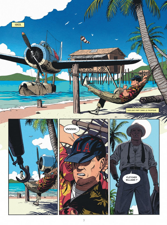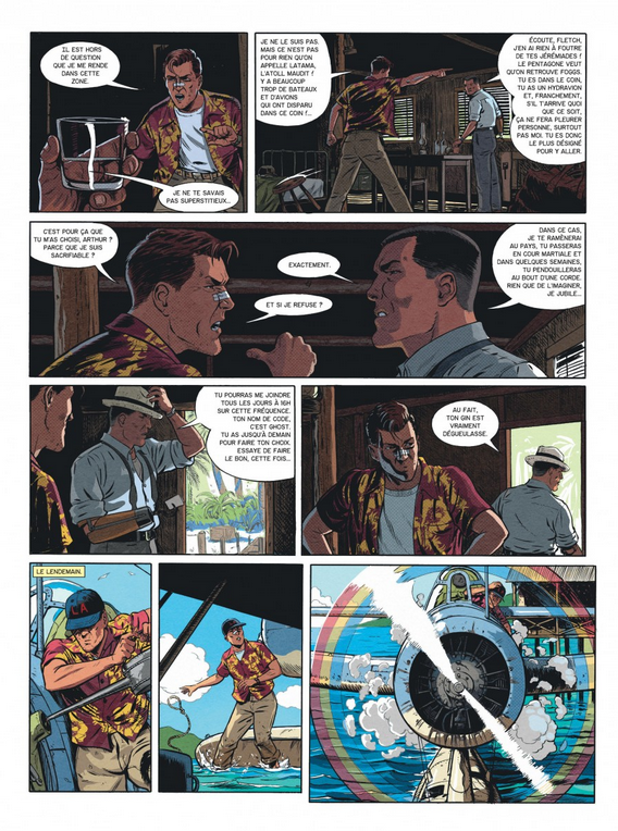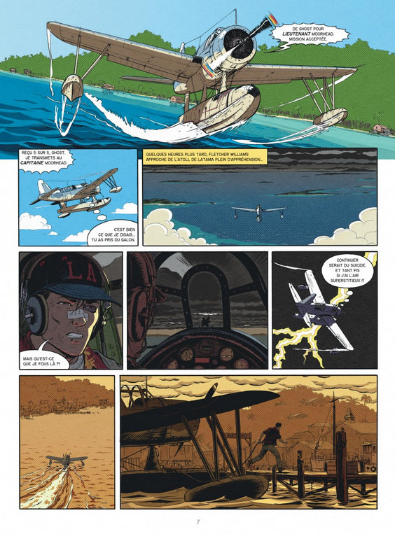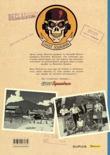 Années 50. Fletcher Williams se la coule douce dans le Pacifique lorsqu'un fantôme surgit de son passé. Le capitaine Arthur Moorhead, qui volait avec lui avant qu'il ne déserte, l'a débusqué pour lui confier une mission secrète : retrouver Francis Foggs, un industriel qui a fait fortune avec l'armement qu'il vend au gouvernement américain. Le milliardaire a disparu avec son yacht dans un des nombreux atolls qui entourent la Nouvelle-Guinée. Mais lorsque Fletch comprend qu'il a disparu dans " l'atoll maudit ", un endroit où de nombreux bateaux et quelques avions ont disparu, il n'est plus d'accord. Arthur ne lui laisse pas le choix. C'est ça ou la cour martiale... Et très vite, Fletcher découvre que la région renferme un secret et qu'il ne sera pas de taille à l'affronter seul. Il faut monter en secret une équipe de pilotes mercenaires. Une escadrille fantôme... le Ghost Squadron.