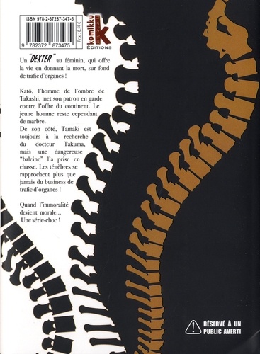 Un 'Dexter' au féminin qui offre la vie en donnant la mort sur fond de trafic d'organes ! Une série choc où l'immoralité devient morale ! Un "DEXTER' au féminin, qui offre la vie en donnant la mort ! Tamaki Suzuhara est une mystérieuse jeune fille qui manie le scalpel comme personne. Avec son associé Takashi, elle s'est spécialisée dans la vente d'organes. Leurs proies sont les pires rebuts de la société, les criminels les plus infâmes qui ne méritent plus de vivre ! Une série coup-de-poing dans lequel l'immoralité devient morale !