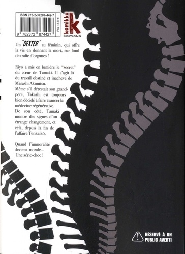 Un 'Dexter' au féminin qui offre la vie en donnant la mort sur fond de trafic d'organes ! Une série choc où l'immoralité devient morale ! Un "DEXTER' au féminin, qui offre la vie en donnant la mort ! Tamaki Suzuhara est une mystérieuse jeune fille qui manie le scalpel comme personne. Avec son associé Takashi, elle s'est spécialisée dans la vente d'organes. Leurs proies sont les pires rebuts de la société, les criminels les plus infâmes qui ne méritent plus de vivre ! Une série coup-de-poing dans lequel l'immoralité devient morale !