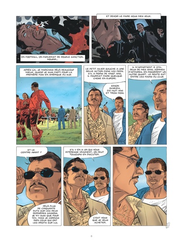 Le football est un sport d'équipe. Une équipe constituée d'agents tout-puissants maniant contrats et commissions opaques, de médecins capables de rendre les produits dopants indécelables, de wags (épouses et petites amies de joueurs) expertes pour épingler les vedettes, de sociétés de paris, de cadres corrompus... Le football est un sport qui oppose deux équipes de 11 joueurs. Et à la fin, ce sont toujours les mêmes qui gagnent de l'argent... Sauf peut-être quand Larry Max constitue sa propre équipe d'enquêteurs pour se lancer dans ce match à haut risque.