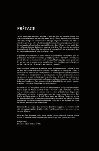 Kratos est de retour ! Sa guerre contre les dieux de l'Olympe étant achevée depuis bien longtemps, le redoutable spartiate s'est construit une nouvelle vie dans le grand Nord. Alors qu'il cherche à enfouir la rage et la colère qui ont défini son existence, Kratos déclenche une querelle avec un mystérieux culte de berserker lorsqu'il sauvelta vie d'un homme attaqué par un ours monstrueux. Pour l'ancien fantôme de Sparte, l'enfer est pavé de bonnes intentions... Retrouvez le Dieu de la Guerre avec cette préquelle au jeu de Santa Monica Studio, et embarquez dans une aventure brutale, épique et inédite !
