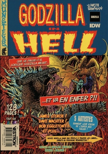 Que se passe-t-il lorsque Godzilla meurt... et va en ENFER ? ! James Stokoe (Aliens Perdition) Ulises Farinas (Judge Dredd) et 5 autres artistes donnent leur vision de l'enfer du Roi des Monstres. Un album singulier, original, à la touche poétique... sauce Kaiju. Suivez Godzilla dans son parcours à travers les limbes... jusqu'à sa prochaine resurrection !