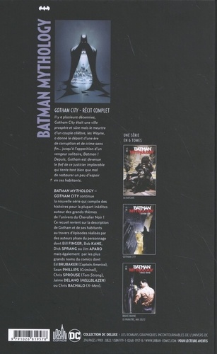 Il y a plusieurs décennies, Gotham City était une ville prospère et sûre mais le meurtre d'un couple célèbre, les Wayne, a donné le départ d'une ère de corruption et de crime sans fin... jusqu'à l'apparition d'un vengeur solitaire, Batman ! Depuis, Gotham est devenue le fief de ce justicier implacable qui tente tant bien que mal de restaurer un peu d'espoir en ces habitants. Batman Mythology - Gotham City continue la nouvelle série qui compile des histoires pour la plupart inédites autour des grands thèmes de l'univers du Chevalier Noir ! Ce recueil revient sur la description de Gotham et de ses habitants au travers d'épisodes réalisés par des auteurs phare du personnage dont Bill Finger, Bob Kane, Dick Sprang ou Jim Aparo mais également par les plus grands noms du comics dont Ed Brubaker (Captain America), Sean Phillips (Criminal), Chris Sprouse (Tom Strong), Jaime Delano (Hellblazer) , ou Chris Bachalo (X-Men).