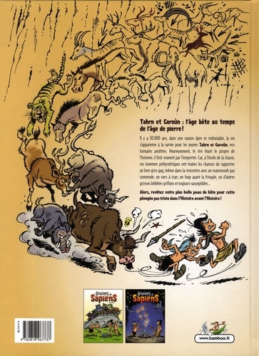 L'âge bête au temps de l'âge de pierre ! Il y a 40 000 ans, dans une nature âpre et redoutable, la vie s'apparente à la survie pour Tahrn et Garoûn, nos lointains ancêtres. Heureusement, le rire étant le propre de l'homme, il finit souvent par l'emporter. Car à l'école de la chasse, ces hommes préhystériques ont toutes les chances de rapporter un bon gros gag bien juteux : même dans la rencontre avec un mammouth pas commode, un ours à cran, un loup ayant la fringale, ou d'autres grosses bébêtes griffues et toujours susceptibles... Alors, revêtez votre plus belle peau de bête pour cette plongée pas triste dans l'Histoire avant l'Histoire !