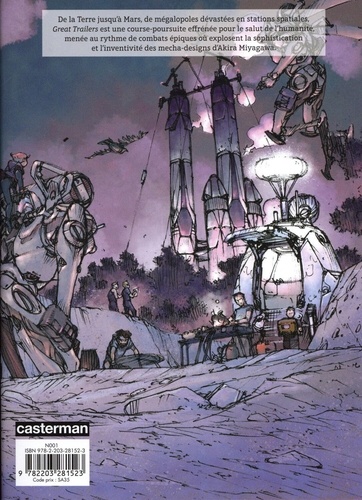 De la Terre jusqu'à Mars, de mégalopoles dévastées en stations spatiales, Great Trailers est une course-poursuite effrénée pour le salut de l'humanité, menée au rythme de combats épiques où explosent la sophistication et l'inventivité des mecha-designs d'Alcira Miyagawa.