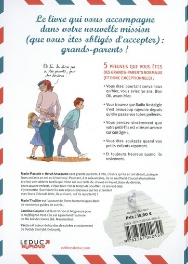 Le livre qui vous accompagne dans votre nouvelle mission (que vous êtes obligés d'accepter) : grands-parents ! 5 preuves que vous êtes des grands-parents normaux (et donc exceptionnels) : Vous êtes pourtant convaincus qu'hier, vous aviez 30 ans. Bon OK, avant-hier. Vous trouvez que Radio Nostalgie s'est beaucoup rajeunie depuis qu'elle passe vos tubes préférés. Vous pensez sincèrement que votre petit-fils est "très en avance sur son âge". Vous êtes soulagés quand vos petits-enfants repartent. Et toujours heureux quand ils reviennent.