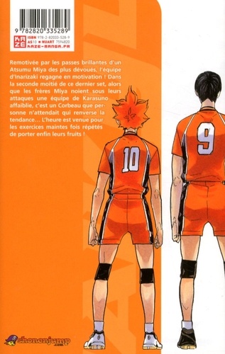 Remotivée par les passes brillantes d'un Atsumu Miya des plus dévoués, l'équipe d'Inarizaki regagne en motivation ! Dans la seconde moitié de ce dernier set, alors que les frères Miya noient sous leu attaques une équipe de Karasuno affaiblie, c'est un Corbeau que personne n'attendait qui renverse la tendance... L'heure est venue pour les exercices maintes fois répétés de porter enfin leurs fruits !