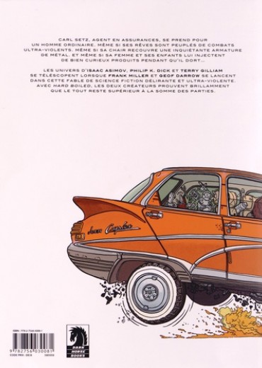 Carl Setz, agent en assurances, se prend pour un homme ordinaire. Même si ses rêves sont peuplés de combats ultra-violents. Même si sa chair recouvre une inquiétante armature de métal. Et même si sa femme et ses enfants lui injectent de bien curieux produits pendant qu'il dort... Les univers d'Isaac Asimov, Philip K Dick et Terry Gilliam se téléscopent lorsque Frank Miller Et Geof Darrow se lancent dans cette fable de science-fiction délirante et ultra-violente. Avec Hard Boiled, les deux créateurs prouvent brillamment que le tout reste supérieur à la somme des parties.